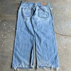 Vintage Y2K Levi’s blue denim jeans pants. Good pair. Busted belt loop. Measures 38x31 and a 10.5 leg opening. Please check measurements before purchasing. I do my best to show any flaws in pictures. Quick shipping! Bundles encouraged! @ants_haul on Instagram.