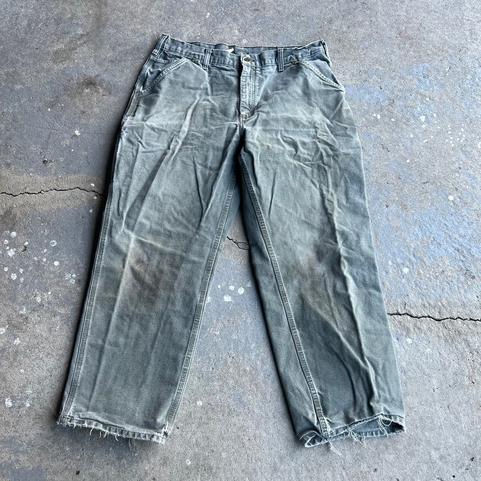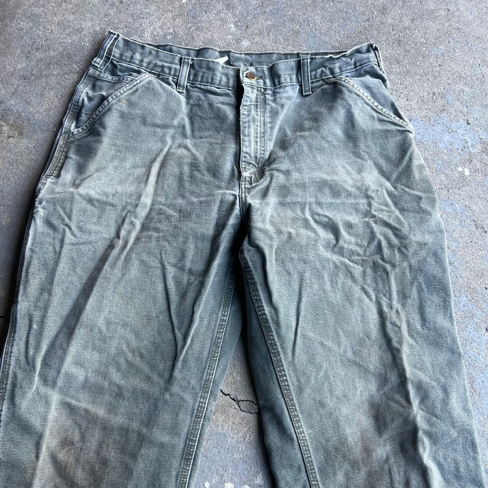 Vintage Y2K mos green Carhartt faded work wear carpenter pants. Top tier pair. Measure 35x28.5 and a 9.5 leg opening. Please check measurements before purchasing. I do my best to show any flaws in pictures. Quick shipping! Bundles encouraged! @ants_haul on Instagram.