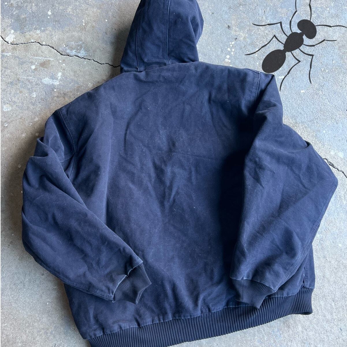 Vintage y2k navy blue j130 MDT carhartt hooded work wear jacket. Great color! Size 2xl tall. Neck tag ripped out but side one is still in. Measures 31x31.5. Please check measurements before purchasing. I do my best to show any flaws in pictures. Quick shipping! Bundles encouraged! @ants_haul on Instagram.