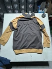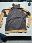 Get ready to turn heads with this vintage Y2K Nike Air track jacket. The satin brown and yellow color combination is sure to make a statement, while the full zip design allows for easy wear. This jacket is made with high-quality polyester material and features the Nike Air product line for ultimate comfort. It's perfect for men of all sizes, with a regular fit and XL option. The jacket is designed with a track style and features the Nike brand logo. Whether you're hitting the gym or just running errands, this jacket is a must-have addition to your wardrobe.