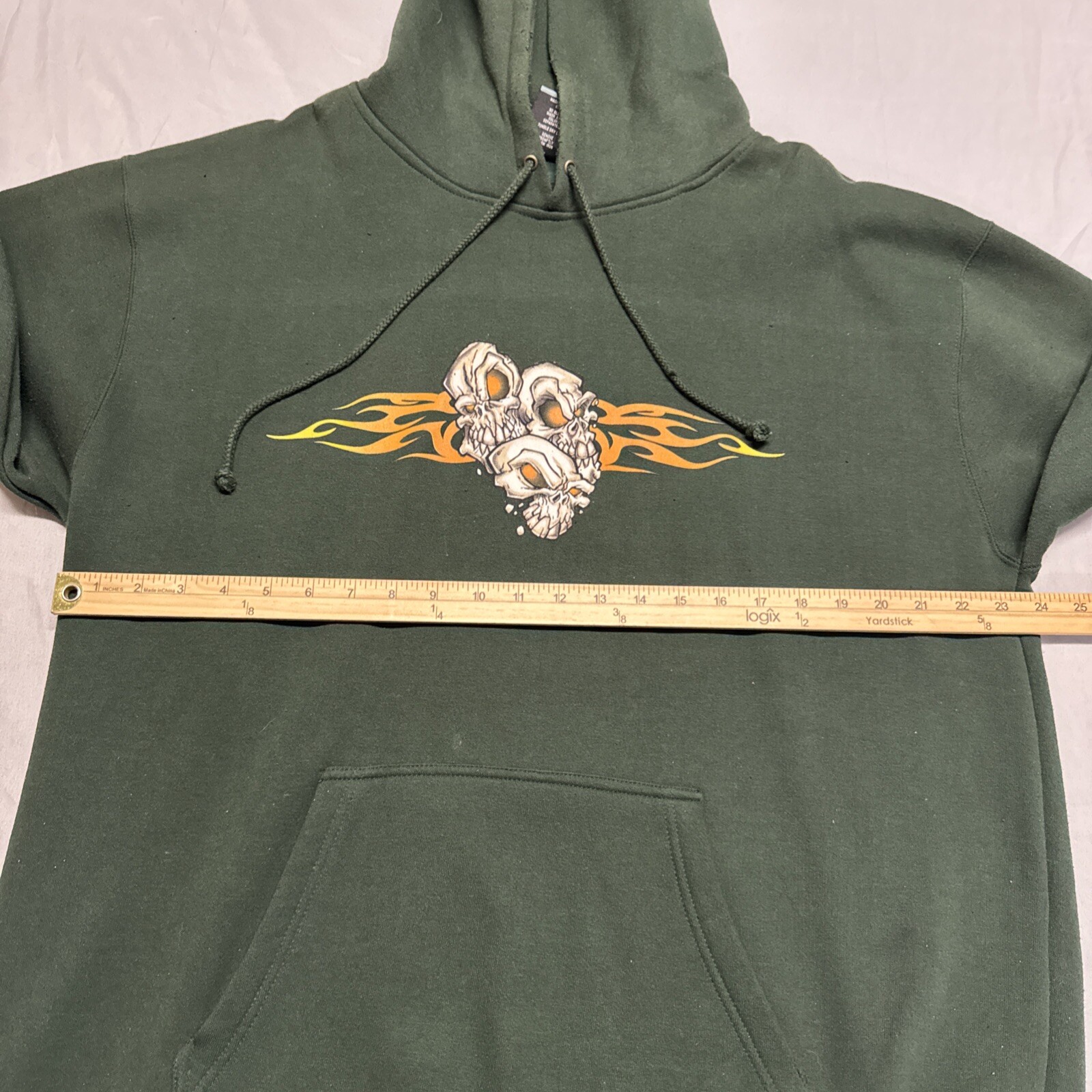 This vintage Y2K oversized hoodie is a total gem! The heavy skull print on both sides gives it such a cool, edgy vibe, and the green color is so unique. It’s in amazing preowned condition—super soft and comfy. Love the oversized fit, perfect for a laid-back look. Shipping was super fast too! Highly recommend for anyone who loves retro streetwear.