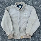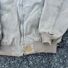 Vintage Y2K des beige Carhartt Santa Fe work wear active style jacket. Cool jacket. Hadnt seen this model before. Different lining than your typical Santa Fe*** MEASURES 27.5x29.5. Has stains on it. Please check measurements before purchasing. I do my best to show any flaws in pictures. Quick shipping! Bundles encouraged! @ants_haul on Instagram.