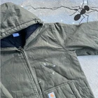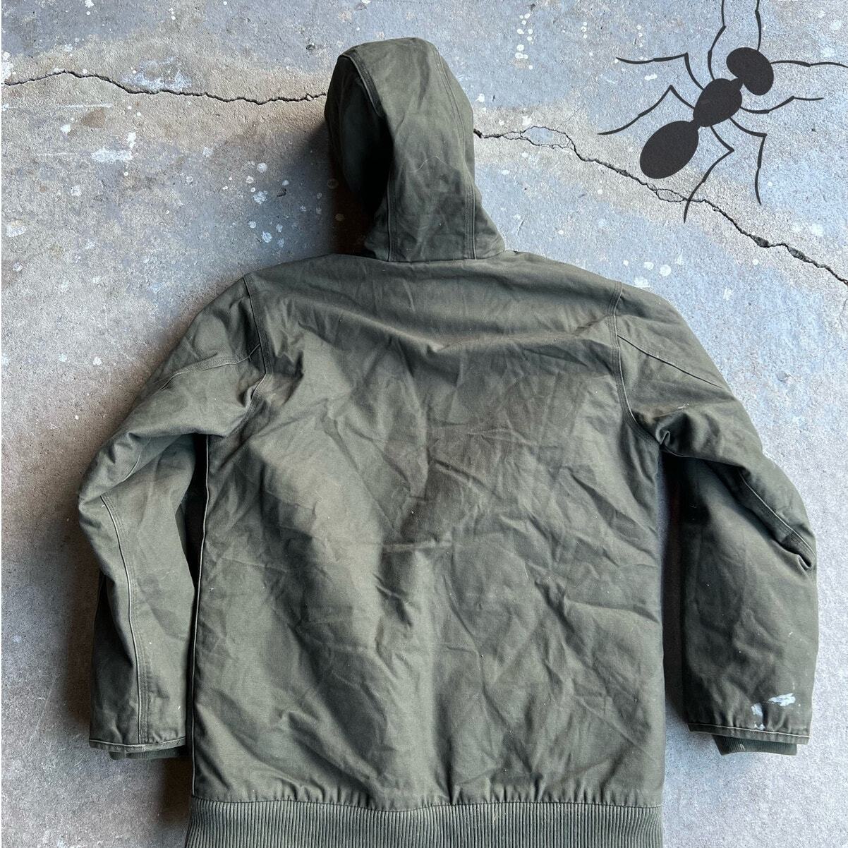 Vintage women’s green y2k carhartt hooded work wear jacket. Stains on the front are caulking I believe. Real nice color. Women’s size!!! Measures 21.5x29. Please check measurements before purchasing. I do my best to show any flaws in pictures. Quick shipping! Bundles encouraged! @ants_haul on Instagram.