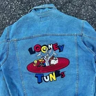 Vintage Y2K looney tunes denim blue jean jacket. Good jacket. Couple stains on it. Measures 24x25. Please check measurements before purchasing. I do my best to show any flaws in pictures. Quick shipping! Bundles encouraged! @ants_haul on Instagram.