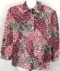Vintage silky flowy Top 44 zebra Pink Blk Button Up Collar 90s Career Glam Chic Chest 46 " (23"underarm seam to seam x2) Length 23 " (front shoulder to hem) Excellent fashion gem Fast shipping , same or next business day with tracking number for confirmation Thank you Questions? Please let me know I answer questions promptly Have a great day! Excellent Fashion Gem WalkupandDeal offers great deals on previously loved items....... We inspect each garment for any flaws the item may have: missing buttons,holes,spots,tears or pilling. Our suppliers are carefully selected, so we only offer items that are in Great with minimal wear ,excellent,nearly new or New with tags condition. Information on each item can be found in the "item specifics" tab, including: Size, measurements,fabric content and care instructions. Our faculty is a non smoking environment and each item is laundered & steamed prior to listing and shipping. We strive for every customer to be happy with their items and as always offer a "return for any reason" policy...... ..... Thank you for shopping with us!!!