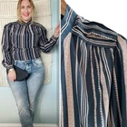 Vintage striped puff shoulder button back neck blouse! Adorable details. Purple contrast buttons. Classic gorgeous! •Size: best fits modern S •Condition: Excellent vintage •Color: blue & pink with purple buttons Bundle for combined shipping! Pictures/video are part of the description. Measurements are approximate and for guidance. Color may vary by screen. Sizes vary between designers. ALL preowned items can be expected to show normal signs of wear. Smoke free, DOG FRIENDLY home. 10% of net sales go directly to charity at my local food bank. Tags: Vintage retro pleated colorful office secretary romantic cottage style spring summer winter fall transitional travel Europe 90s retro preppy tennis prep country club garden party polo old money elegant sophisticated classic classy office business work meeting boss secretary chic