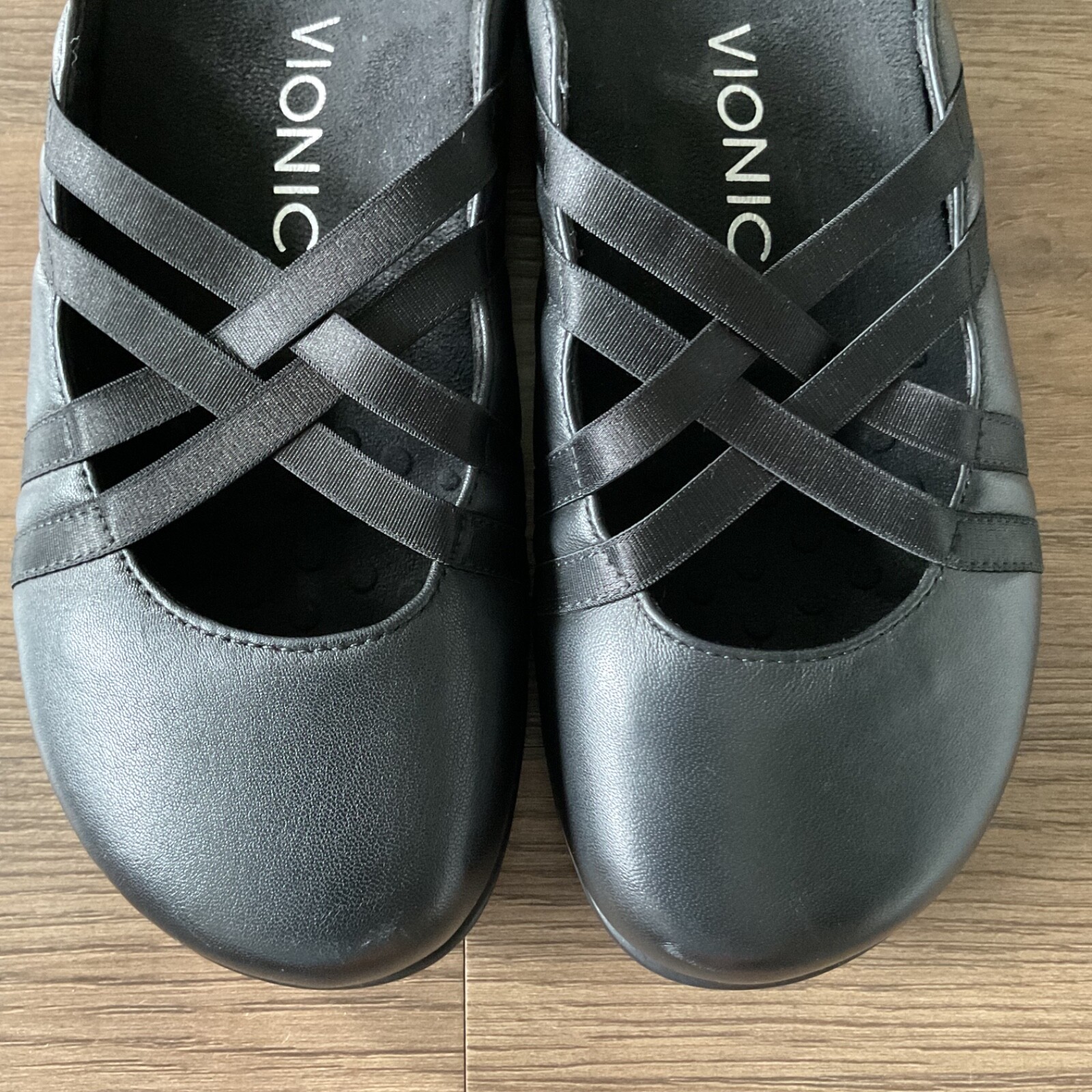 The Vionic Claire Women's Leather Criss Cross Strap Slip-On Black Mules Clogs Shoes in UK size 5 (US size 7, EU size 38) are perfect for casual occasions during the summer, fall, and spring seasons. These stylish black clogs feature a slip-on design with a round toe shape and criss cross strap accents, providing a comfortable and secure fit. Made with high-quality leather and a durable rubber outsole, these shoes are designed for everyday wear and long-lasting support. Ideal for women seeking both style and comfort in their footwear, the Vionic Claire mules are a versatile and practical choice for the modern woman.