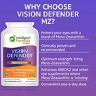 SUPPORTED BY SCIENTIFIC RESEARCH - In the body, Meso-Zeaxanthin (“eye vitamin”) is found only at the very centre of the macula of the eye. The macula of the eye is responsible for our central vision, enabling us to see fine detail clearly – essential for activities like reading and driving. Meso-Zeaxanthin protects the macula by acting as a powerful antioxidant, neutralising harmful free radicals and absorbing damaging 'blue’ light from exposure to smartphones, television and computer screens. WHY YOU SHOULD BOOST YOUR LEVELS OF MESO-ZEAXANTHIN: Dietary sources of Meso-Zeaxanthin can only be found in small quantities in very specific foods such as shrimp and the skin of certain fish, meaning obtaining Meso-Zeaxanthin from diet alone is ineffective, especially for the elderly where nutrient absorption is inefficient and those who are on a vegan diet. Supplementation with Vision Defender MZ meso zeaxanthin supplement solves this problem, providing optimum strength Meso-Zeaxanthin. PERFECT COMPLEMENT TO LUTEIN SUPPLEMENTS – Already taking a vision supplement containing lutein but not Meso-Zeaxanthin? Taking an AREDS2 formula such as Vision Defender AMD eye supplement? Enhance the power of your lutein product with the addition of Vision Defender MZ. Meso-Zeaxanthin complements and works together with lutein but is 'missing' in many eye supplements. Add this key antioxidant carotenoid nutrient for maximum eyecare support. Why risk your precious eye health and eyesight? PREMIUM QUALITY, VEGAN AND VEGETARIAN FRIENDLY – Vision Defender MZ eyesight supplement is made in the UK using top-grade ingredients to strict GMP (Good Manufacturing Practice) standards in MHRA inspected facilities, so you can be assured that this is a superior quality eye supplement. Specially made to be suitable for vegan and vegetarians, all ingredients are from vegetable source and is free from artificial colours, flavours, lactose, gluten and GMO. Cruelty-free: Not tested on animals. TRUST AND BENEFIT FROM THE SPECIALISTS - The trusted Vision Defender range of eye health supplements has been specially developed by qualified health care professionals to improve the health and vision of your eyes. Our Chief Pharmacist and Co-Founder Keith specialises in eye nutrition and has written a book: “Help! What Vitamins Should I Take for My Eyes?” Our eyesight is precious and important in everything we do - continue to do all the things you love with the Vision Defender.