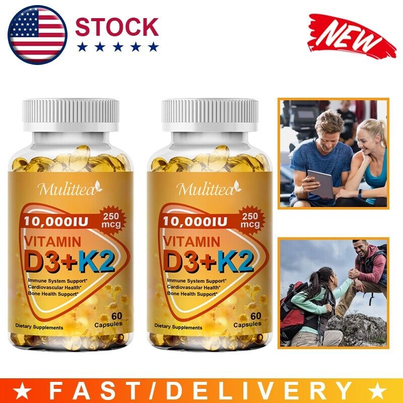 About the item: ✅2-in-1 Support: 5000 IU of Vitamin D3 and 200 mcg of Vitamin K2 (MK-7) . ✅Let your skin glow with sunshine - Often referred to as the sunshine vitamin, vitamin D is an important vitamin. Most people don't get enough vitamin D each day, and it's hard to get it from the diet. GPGP Greenpeople Vitamin D3 K2 5000 IU Capsules provide a reliable, powerful daily supplement of these essential nutrients. ✅Bone, Teeth, Immune System - Vitamin D contributes to the health of bones and teeth. Both vitamin D and vitamin K contribute to the maintenance of bones and are a perfect match. This formula uses a potent D3 form of vitamin D (cholecalciferol) and a high-quality MK-7 form of vitamin K2 (menaquinone). The perfect match: Vitamin K2 and D3 simply go together. Most people are aware of the benefits of vitamin D, but many don't realize that vitamin D requires vitamin K2 to maximize its benefits. ✅Strong bones and a healthy heart: This product not only promotes the absorption of calcium, but also properly distributes it to the places where the bones need it most. ✅Multivitamin (vitamin K2 and vitamin D3) to support your joint ability, internal circulatory function, dental health and immune system. ✅Best Quality: Non-GMO Verified, Vegan Certified, Whole Plant Based Vitamin K2+D3. No animal ingredients like lanolin or cow, no artificial colors, no flavors, no soy, no gluten. Description: 2-in-1 SUPPORT: 10000 IU (250mcg) of Vitamin D3 & Vitamin K2 MK-7 for Strong Bones and a Healthy Cardiovascular System.