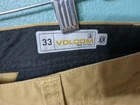 Elevate your wardrobe with these stylish Volcom Men's Chino Flat Front Shorts in Khaki. Perfect for any occasion, whether it be for travel, workwear, or casual wear, these shorts feature a solid pattern and zip closure. The cotton blend material and medium fabric wash provide comfort and versatility, while the stretch feature ensures a perfect fit. These shorts are perfect for skateboarding enthusiasts with its modern design and flat front feature. The beige color and regular fit make it a great addition to any outfit. Get ready for any season with these versatile shorts, whether it be winter, summer, fall, or spring.