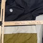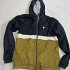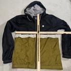 Stay stylish and comfortable while staying dry with this colorful Volcom Rain Jacket. Made of water-resistant nylon material and mesh lining, this mid-length jacket features a half-zip closure and a windbreaker style. The jacket is perfect for walking, skateboarding, hiking, and more, and comes in a vibrant multicolor pattern that adds a touch of fun to your outdoor adventures. With a size of medium and a regular fit, this jacket is sure to keep you dry and looking good no matter the weather.