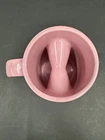 Enjoy your hot or cold beverage in style with this pink ceramic coffee mug featuring the magic hole character from Voodoo Doughnuts Portland OR. The mug is perfect for all occasions and comes with a solid color pattern. It is an original piece and not a licensed reproduction. The mug is made of high-quality ceramic and porcelain material and has a unique American style. The magic theme adds a touch of fun to your day. The mug is perfect for collectors and can be added to your collection of mugs, dinnerware, and serveware. It is a must-have for any Voodoo Doughnuts fan.