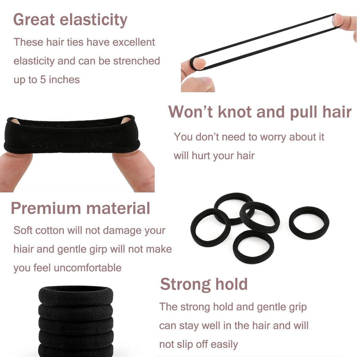 Vrose Flosi No Damage Hair Ties For Women Girls Men Kids Toddler - Soft Seamless Features: Value Pack:100 hair rubber bands no damage with 1.5 inches in diameter are perfect for thin hair, thick hair, straight hair, thick hair and curly hair, easily create a beautiful low or high ponytail, elegant and fashionable, perfectly matched with various outfits Or hairstyle. Sturdy and Elastic:The hair ties are made of highly elastic thick material, soft and elastic, which can hold your hair in place without damage. These hair ties for women also keep hair strong and less prone to loosening. No Damage:With seamless design and soft material, hair ties for women are gentle enough to use and remove without snagging or pulling on your hair. These hair ties stretch up to 5 inches and are highly elastic for thick hair. Wide Application:Brown can easily match different hair colors and can match all your outfits and hairstyles. 100 black headbands are economical and suitable for long-term use. Ponytail holder suitable for daily use and exercise. Great for Kids and Women:Brown hair ties are simple and practical, they can fix your ponytail well and are suitable for your daily use. They can be applied in various occasions such as school, home, office or use them while working out. Features: Value Pack:100 hair rubber bands no damage with 1.5 inches in diameter are perfect for thin hair, thick hair, straight hair, thick hair and curly hair, easily create a beautiful low or high ponytail, elegant and fashionable, perfectly matched with various outfits Or hairstyle. Sturdy and Elastic:The hair ties are made of highly elastic thick material, soft and elastic, which can hold your hair in place without damage. These hair ties for women also keep hair strong and less prone to loosening. No Damage:With seamless design and soft material, hair ties for women are gentle enough to use and remove without snagging or pulling on your hair. These hair ties stretch up to 5 inches and are highly elastic for thick hair. Wide Application:Brown can easily match different hair colors and can match all your outfits and hairstyles. 100 black headbands are economical and suitable for long-term use. Ponytail holder suitable for daily use and exercise. Great for Kids and Women:Brown hair ties are simple and practical, they can fix your ponytail well and are suitable for your daily use. They can be applied in various occasions such as school, home, office or use them while working out. eBay integration by