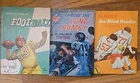 This vintage 1960s book bundle titled "Throw the Long Bomb" features short stories about football, coaching, training, and friendship. Published by Whitman Publishing LLC, the hardcover book is intended for young adults aged 9-12 and includes illustrations. Authored by Jack Laflin and Bart Starr, it appeals to boys' interests and sports enthusiasts, with a focus on NFL football and the New York Giants. Throw the long bomb - jack laflin How to star in football - masin Elbert the mind reader - barbara rinkoff