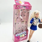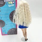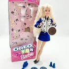 This vintage 90s Barbie doll is a must-have for collectors and fans of Oreo cookie mini foods. The doll comes with a baseball jacket, collector toy, and Oreo-themed accessories including a purse, trivia cut-outs, and a plate of cookies. The Oreo Fun Barbie is a special edition doll from the Playline Barbie product line and was manufactured in 1997 by Mattel. The doll is in its original packaging, which has been opened. CONDITION: Pre-owned in good condition. Box not sealed. Comes with original outfit, all accessories including oreo cookies mini food. ***SHIPS NEXT BUSINESS DAY***