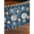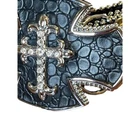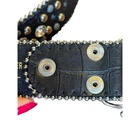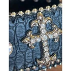 Vtg Belt Women 47" Black Leather Reptile Cross Rhinestone Studded Western Horse