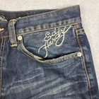 Some small holes in the back. Please see ALL pictures before purchasing. Get ready to embrace the vintage vibe with these Ed Hardy Y2K New York City embroidered jean shorts. The solid blue color and distressed denim fabric make them perfect for travel, casual wear, or workwear. These Bermuda-style shorts come with a flat front and a button closure, making them easy to wear and comfortable. The relaxed fit and 5-pocket design of these shorts make them perfect for carrying your essentials while on the go. The embroidered logo adds a unique touch to these shorts, making them stand out from the rest. These shorts are machine washable and easy to care for, making them a practical addition to your wardrobe.