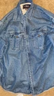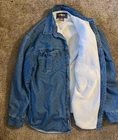 This Levi's Sherpa Lined Button Up Shirt in size XL is a must-have for any wardrobe. The shirt is made of high-quality cotton material and features a solid pattern with a blue color. It has a button closure and is lined with sherpa for added warmth. The shirt is in great shape and has been well taken care of. It's a basic style jacket that would be perfect for any occasion.