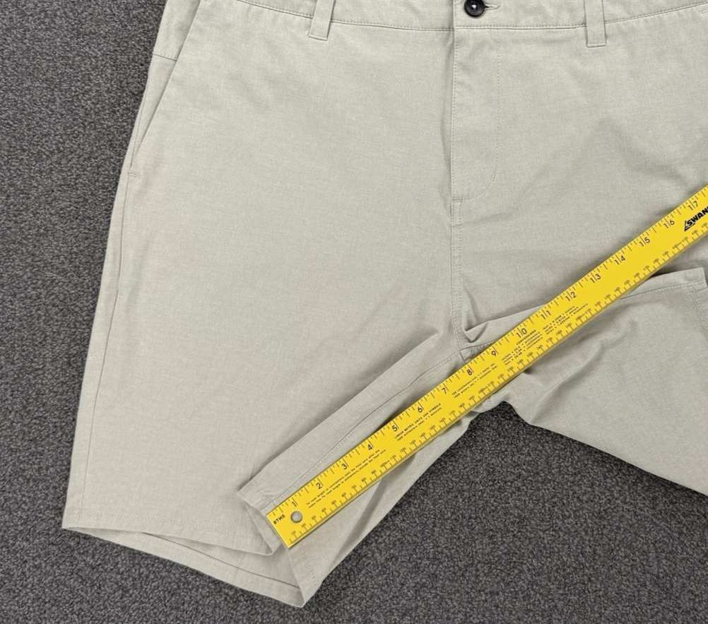 Vuori Mens Aim Shorts Size 36 Beige 8" Inseam Performance Golf Stretch V368. Item is in excellent preowned condition minimal signs of use as pictured No Stains No Holes No Issues
