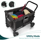 PERFECT BABY & TODDLER STROLLER – Foldable wagon collapses easily for storage and holds up to 4 passengers in removable seats, with five-point adjustable safety harnesses to keep the little ones secure EASY-ACCESS FRONT ZIPPER DOOR – 4 seater wagon stroller lets kids get in and out easily; it also makes storage a breeze DEEP CARRIAGE BASKET – Toddler wagon keeps kids safe and comfortable, with zippered mesh panels for optimal ventilation, and provides tons of space when using as a beach cart or utility cart WAGON WITH CANOPY – Slideable/removable UV-protection canopy provides shade for little ones while they ride in the carriage basket and allows you to adjust the canopy for the angle of the sun REMOVABLE PUSH HANDLE – Kids wagon handlebars come with a vegan leather cover and an optional pull strap for easy going on soft terrain ALL TERRAIN WAGON – The heavy duty wagon tires are excellent for everything from soft beach sand to hard, bumpy terrain REMOVABLE FABRIC FOR EASY CLEANING – Keep your baby stroller tidy with the conveniently designed, removable fabric liner that can be washed with mild soap and warm water 1-STEP FOOT BRAKE – Simple foot-operated brake locks the all terrain stroller safely in place HIGHLY VERSATILE WAGON FOR KIDS – With extra pockets and designed for kids 6+ months old. 99 lb. capacity per bench (2 seats per bench) with a 300 lb. total capacity. Remove the seats and it makes a perfect sports, camping, beach wagon, and shopping cart! COMMON SEARCH TERMS: folding wagon, lounge wagon, baby wagon, bassinet stroller, infant stroller, utility wagon, folding cart, wagon carts foldable, kids wagon stroller, stroller for toddlers 2-4years, wagon cart with wheels foldable, foldable cart, collapsible wagon with wheels foldable, toddler strollers 3-5, wagons for kids, collapsible cart with wheels, stroller for kids ages 4-8, strollers for toddlers 1-5, stroller for big kids, baby wagons for infants and toddler, wagon stroller 4 seater
