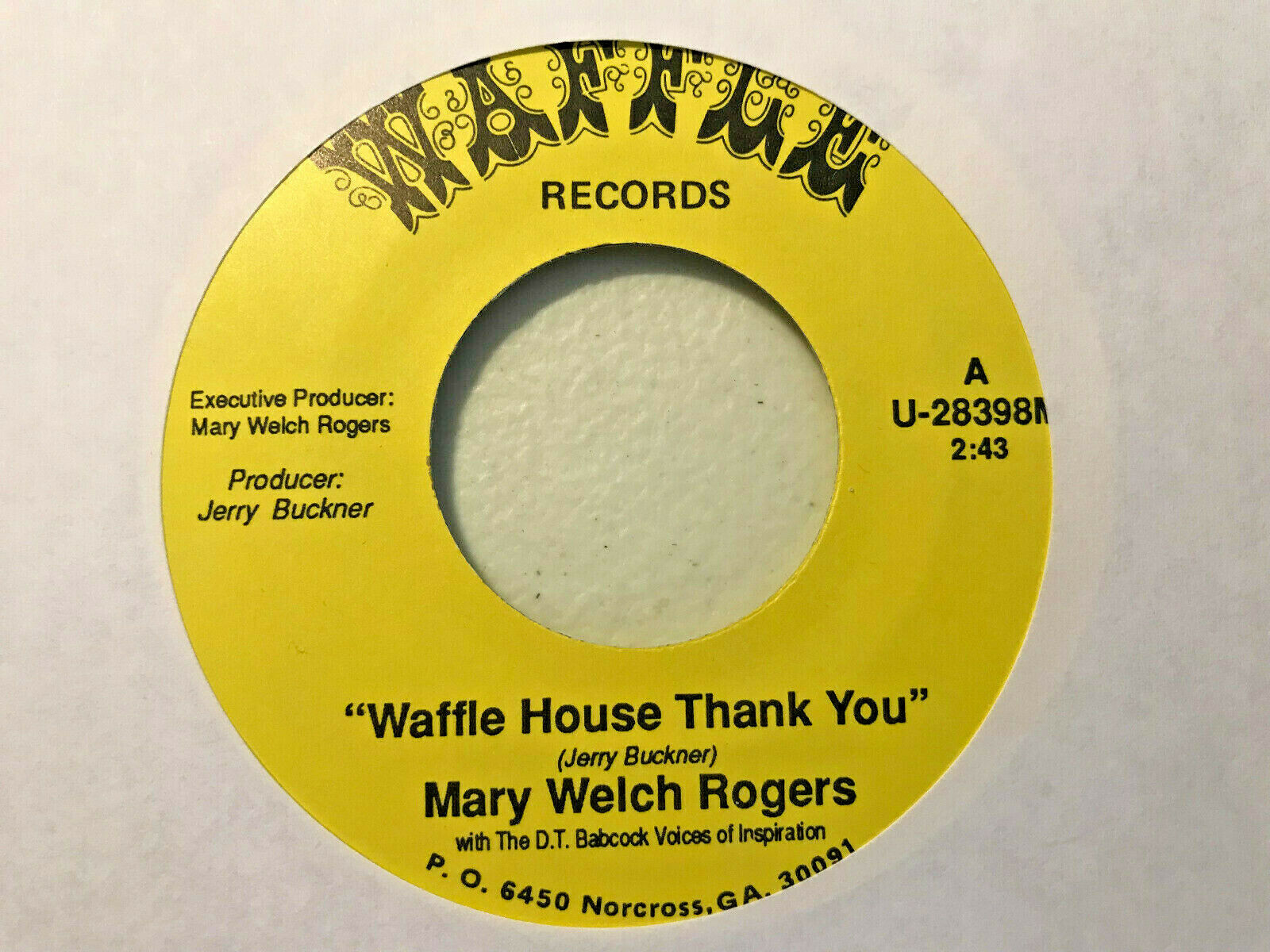 WAFFLE HOUSE JUKEBOX RECORDS SPECIAL BUNDLE!!!!! 10 RECORDS FOR $20 / LIMITED TIME OFFER THESE WAFFLE HOUSE RECORDS ARE PRISTINE 45 RPM PRESSINGS FROM THE PERSONAL COLLECTION OF PRODUCER/SONGWRITER JERRY BUCKNER THAT WERE NEVER LOADED ON THE JUKEBOXES In 1984 Jerry teamed with Mary Welch Rogers to form Waffle Records based in Atlanta, GA. Together they produced a string of original music tracks for Waffle House that are featured on their in-store jukeboxes . Jerry is co-writer and artist for the classic 80's hit "Pac-Man Fever" as released by Buckner & Garcia BUNDLE LIST 1 “There’s 844,739 Ways To Eat A Hamburger At Waffle House” Billy Dee 2 “Overdoing” Mary Welch Rogers 3 “Waffle House Family 1 ” Mary Welch Rogers 4 “ Saturday Night At My Place” Gary Garcia 5 “Waffle House Thank You" Mary Welch Rogers 6 “They’re Cookin’ Up My Order” Alfreda Gerald 7 “Songs About Me” Trace Adkins 8 “Waffle House Hashbrowns I Love You” Billy Dee Cox Alfreda Gerald 9 “Last Night I Saw Elvis At The Waffle House” Danny Jones 10 " Bert" Jason Phelps
