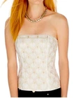 WHBM Off White Gold Embroidered Beaded Art Deco Bodice Corset Bustier NWT Sz 14 High Waisted Art Deco Gold Beaded Embroidered Scalloped Hem Side Boning Removable Straps Hidden Rear Zipper with Hook and Eye Closure Fully Lined Bag with Extra Beads And Removable Straps Provided NWT/ Excellent Condition/ Never Worn Size 14 BUST 20 inches pit to pit WAIST 17 inches LENGTH 14 inches Measurements Taken Flat Smoke Free/ Pet Free Home