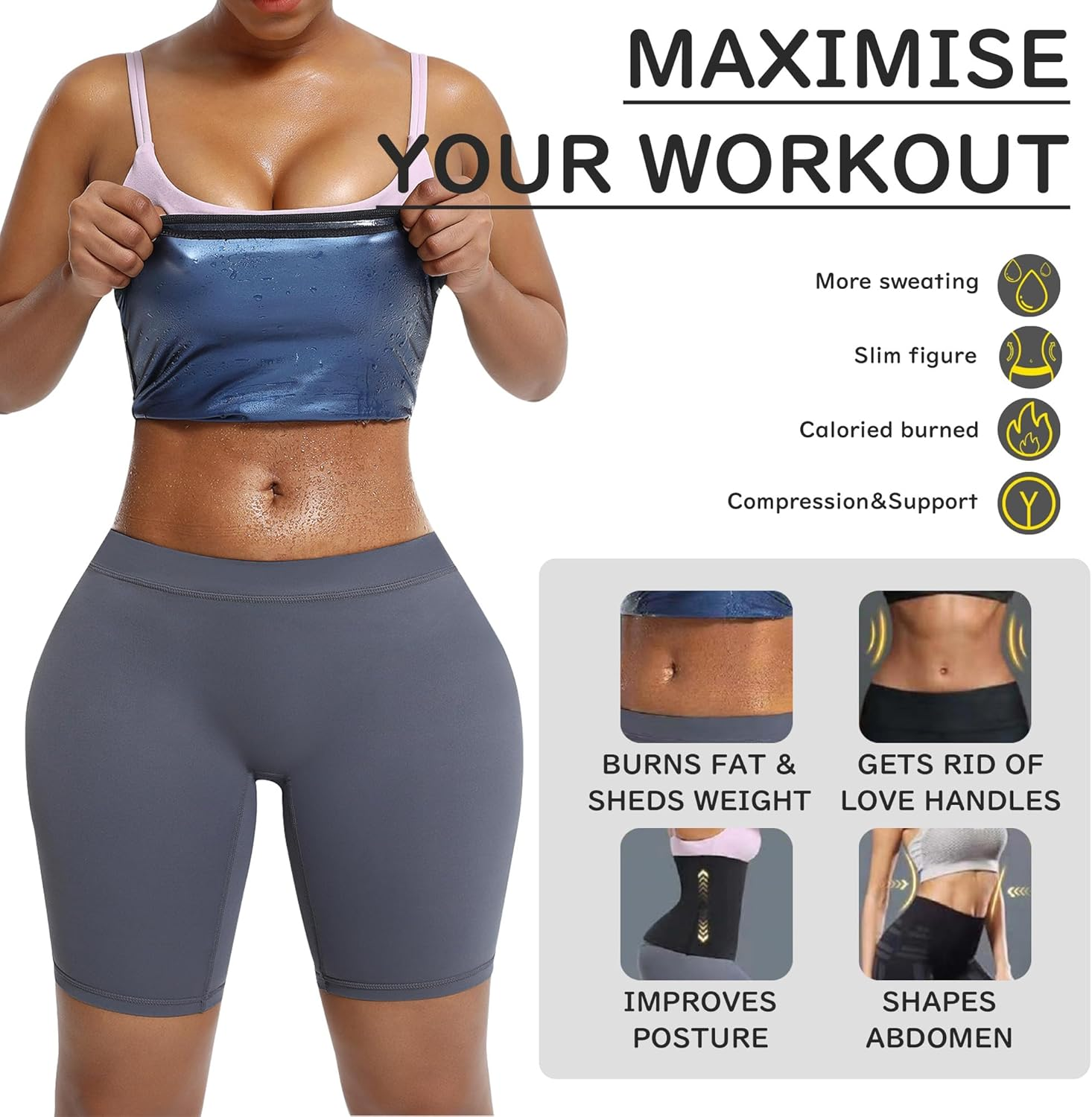 Heat trapping Imported WAIST TRAINER FOR WOMEN:This waist trainer wrap is stretchy enough to feel your stomach being sucked in immediately after put it on. Waist band of inner layer hot thermo sauna fabric can quickly form heat reflection and heat circulation in the abdomen, increase core body temperature, promote sweating in a short time. Achieve multiple sweating effect during exercise makes you easier to reach your belly weight loss goals! 6TIMES SWEAT WAIST TRIMMER: sweat band waist trainer for women uses a heat-trapping polymer fabric to boost your natural body heat and stimulate sweating with any type of physical activity. Wearing the Waist Trimmer while working out or while performing daily activities creates a hot sauna-like experience. give that toned and athletic look you always wanted. NO ROLL DOWN DESIGN&HIGH COMPRESSION: Perfect detail design, with wide silicone non-slip, it won't fall off at any time. Thanks to's specially engineered top-layer performance compression fabric, you'll instantly look slimmer and more toned the moment you put it on. The Waist Trimmer will tuck your tummy in, shape your waistline TO REDUCE 3-5 INCHES. SWEATING LIKE RAINING: Even a daily walk can give you the SAUNA experience! This slim waist belly belt have a significant sweat effect can be used as a PORTABLE SAUNA around waist, you can feel boosts belly thermal activity after put on only 10-15 minutes. Weight loss tummy belt help you sweating like crazy to discharge excess moisture and accelerate fat burning, makes you more than 6 times sweat, you' ll burn more calories faster during exercise. Please pay attention to drink water in time. COMFORTABLE TO WEAR: this waist trimmer is waterproof, lightweight and elastic, brings you comfortable wearing experience during exercise due to the good stretch Practical tools: this belt is very useful for wearing at the gym, yoga, cardio, cycling, running and so on; You can also wear it under your clothes,No effect on movement Product Description Sweat Waist Trimmer Trainer Sauna Suit Waist Trimmer for Women 1.This sauna Sweat Waist Trimmer is made of high quality polymer fabric that absorbs heat and enhances natural sweating 6 times so you will enjoy a hot sauna like experience and associated health benefits. More sweat, less time. 2.Sauna waist wrap for women very lightweight, durable and high stretch, it will not chafe or irritate your skin. It's very comfortable and healthy for daily wear and workout. Waist Trimmer Trainer for Women Lower Belly waist trimmer made of special lightweight neoprene-free material,whcih can increases core body temperature & absorbs sweat easily.Like a sauna suit which helps to trim you,removing excess sweat/water weight during exercise,fat loss faster during working out with the thermo belly warmer belt.Provides compression to support your lower back and abdominal muscles.Acts like a compression belly binder around the waist to offer back brace support and create the best posture for healing 1.Stay-put details inside the seams keep you focused on your workout, while our lightweight compressive design increases blood flow, reducing muscle fatigue and preventing strain. Perfect for providing targeted support to abdominals and lower back, while also suitable for wearing under clothes for instant slimming during everyday activities. 2.The Women's Waist Trimmer from contours your body while providing superior compression support for better, more efficient workouts. you can feel confident and comfortable during sweat-soaked workouts. Waist Trimmer combines an exclusive blend of performance compression and polymer fabrics that work together to accelerate your natural body heat and create an intense sauna-like experience. 3,When you wear the shapewear at the first time, you may feel tight or Uncomfortable. Don't worry, it will be better after 2 days try.