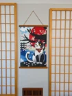 Enchant your space with captivating art—an intricately designed cherry blossom/sakura tree and a playful Maneki Neko Cat give a vibrant burst of energy. Whether it's kawaii room decor, Japanese room decor, or any theme, our hanging canvas art, scroll art, and wood canvas art effortlessly complement your style. This must-have masterpiece is perfect for hanging wall art, creating a captivating atmosphere. Discover the of cherry blossom decor and sakura art, infusing your surroundings with joy and color. Stunning Golden-Yellow Lacquer. Framed at the top and bottom by Fir wood, finished in a golden-yellow lacquer, the natural grain patterns of which beautifully compliment the artwork in between. Long-Lasting Quality. Made with 100% natural cotton the tightly woven threads provide a smooth and resilient surface to ensure the artwork remains rich and vibrant for years to come! Ultra-High Resolution. The art is created as a vector-image using the latest illustrating technology to ultra-high quality resolution with no visual pixilation or blurring of any details. Easy to Hang. Equipped with twine-topped wooden bars for quick installation, adding an artistic touch to any room.