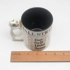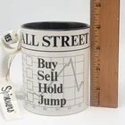 Wall Street Stock Market 12oz Coffee Mug Dept 56 Spinner Cup Tea White Black Fun Should you buy, sell, hold, or jump?? Use this fun mug with spinning answers to solve your finance questions of the day. A perfect gift for all occasions, this mug is ideal for hot or cold beverages and has a capacity of 12oz. It is dishwasher safe and has a diameter of 3.25 inches, standing at 4 inches tall. Cup could also be used as a pen/pencil holder on a desk. Original sales tag still attached. DO NOT put mug in the microwave. Preowned but may not have ever been used. Tag is still attached. No chips or scratches. See photos for details.