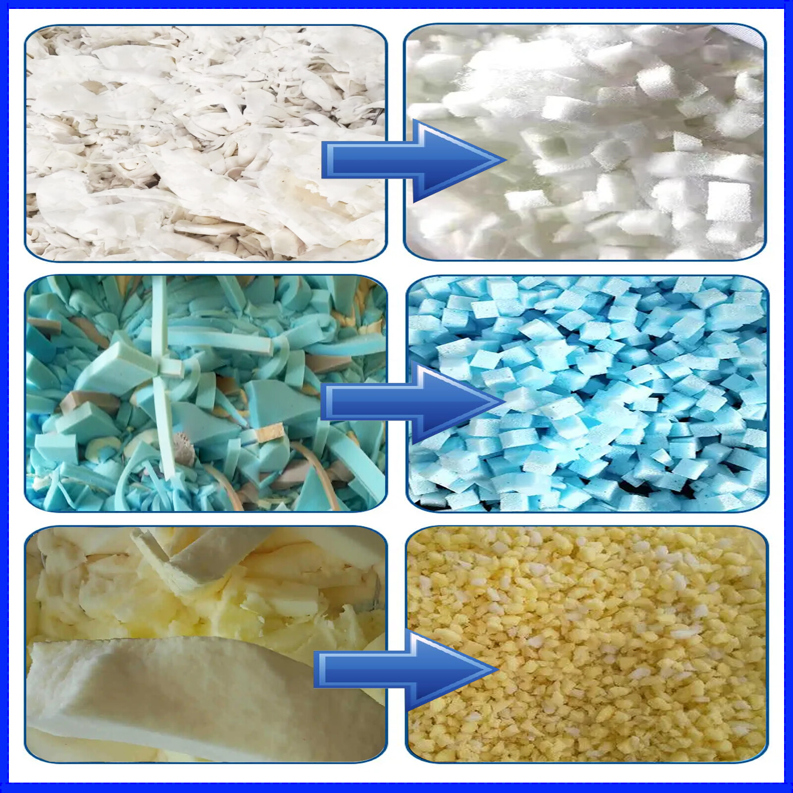 Waste Sponge Crusher Shredder Foam Mill Grinding Machine with 25mm Mesh 60-90KG/H This machine is suitable for crushing all kinds of sponge corner waste. Can crush ordinary sponge, slow rebound sponge, latex sponge, foam, sponge and so on. The crushed sponge particles can be used as cushions for sofa seats, stuffing for toys or as sponges. The replacement of the mesh screen allows the size of the finished product to be adjusted between 3-20mm. It can be combined with other equipment to form a production line. Voltage: 220V Power: 3 KW Rated current: 18.2A Speed: 2800r/min Output: 60-90kg/h Mesh aperture: 25mm Customizable screen This machine with 25mm screen, there are other requirements can be customized screen, by replacing the screen can make the finished size between 3-20mm adjustment. Blade The important parts of the machine blade is made of fine steel heat treatment processing, good hardness and wear resistance, strong impact resistance, prolonging the service life of the blade, suitable for long-term mass production. All copper core motor Running smoothly, rotor through dynamic balance test to ensure operation, small jitter, rapid cooling, long-term operation less heat more durable machine. Magnetic starter Large resistance copper coil, thickened silver contact, can carry more current, strong conductivity, stable start, high working efficiency Application After the sponge is crushed into particles, the main role of the particles is to fill, adsorption materials, crafts r aw materials, plant planting media, etc., can also be used to make toys, filter materials, sound insulation materials and so on. Waste sponge can be used as a filler after crushing treatment. This filler has its unique use in a variety of applications, such as in furniture manufacturing, waste sponge can be widely used as a filler to provide comfort and support for furniture. In addition, waste sponges can also be used in toy production and the transportation of valuables, providing soft and safe internal support for toys, while also providing protection and cushioning for the transportation of valuables. is not only environmentally friendly, but also provides necessary material support for various industries. Note This machine has no plug and needs to be connected to the air switch for use by the customer (we have a video of the wiring, if you can't wire it, you can contact us for a video reference) Display of crushing effect Item Number 220V Sponge Crusher Sponge Corner Waste Mill Grinding Machine--021594 Shipping & Handling Default Shipping Cost or Free Shipping Information: Default shipping cost or free shipping service is only for the lower 48 United States by UPS Ground or USPS. Other areas or needs other shipping ways, please contact us. Buyers from Guam, Puerto Rico, Virgin Islands, American Samoa, Alaska, Hawaii, PO Boxes, APO/FPO addresses or other countries/areas, there WILL be extra shipping costs, please contact us for more detailed information. Please make sure your address is valid for both UPS and USPS services. Any costs incurred because of incorrect or undeliverable address should be undertaken by buyer. Handling Time: Shipping is usually made in 1-3 business days after payments cleared. Orders are processed from Monday-Friday; Not on the weekends & public holidays. Sales tax / Customs duties Any sales taxes or Customs duties are not included. If came out, they must be undertaken by the buyer. Damage In Shipping Email or call us First! We will work with you to get the case resolved in the fastest method. Return&Refund If you are not 100% happy with your purchase, please contact Us. Please don't directly opened a request or case without informing us, or else, we will do some discounts on the warranty and other sales-services later on. Hope for your understanding. Returns & Exchanges All returns must be made within 30 days of delivery date. Items must be in new, unused condition, with all original materials included with the shipment. A partial refund may be applied for opened or damaged items, depending on the condition. Items returned under the buyer’s remorse: The return shipping fee must be covered by the buyer; The original shipping cost will also be deducted from the refund. 15% restocking fee of the items purchase price will be charged. Returns that are the result of our seller's error: Buyer will receive a full refund of the item as well as shipping charges All returns require a RA (Return Authorization) number that will be given by our seller. Please contact with us at first for more details. Defective & Damaged Products If product was received damaged or not as described, please send us some pictures or videos, so we could well understand your problem, then solve them for you ASAP. Besides, it's much helpful for us to claim with UPS, remind our related department to pay much more attention to packaging later on. Hope for your understanding. Replacement or refund of defective or damaged products can only be returned in exchange for the exact same product, or else, the purchase price will be refunded back to your original payment method. If an item is received damaged, customer service must be contacted within 7 days of receiving your item. All returns require a RA (Return Authorization) number as above. Warranty& Feedback 6 months' warranty for the machines, not for the consumables. We stand behind our products all the item, so even if your warranty period has expired, you can still seek for service or technical support from us with low cost. Any warranty shipping cost to us is responsible by buyer. Any shipping cost to buyer is responsible by the seller. We committee to the customer satisfaction and want to bring you the best purchase experience. If there is any problems, please contact us ASAP. If not, please leave us a positive feedback as it's very important for us. Thanks very much. On Feb 27, 2025 at 21:32:21 PST, seller added the following information: