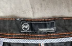 Weatherproof Black 5 Pocket Utility Pants in Size 38 X 32, featuring a button and zip closure, made from a comfortable cotton blend knit fabric. The pants have a relaxed fit with straight legs and a flat front. They include cargo pockets for added functionality and come in a solid black color. Ideal for workwear, these pants are part of the Wrangler Workwear line and are suitable for all seasons.