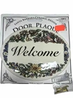 Welcome Door Plaque Santa Barbara Ceramic Design White butterflies and birds, 5” Oval Please see all photos cardboard backing does have some damage and markings plaque is intact.