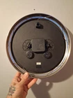 This Westclox Wall Clock features a sleek silver finish with a 12-inch round metal frame, adding a touch of classic elegance to any room. This hanging wall clock not only tells the time but also includes a thermometer feature for added functionality. Powered by batteries, the analog display is easy to read and the clock's metal construction ensures durability for years to come. Perfect for home décor enthusiasts looking for a versatile and stylish timepiece. Pre-owned like new tested and works see pictures for details perfect for outdoor or indoor use Nice display clock could make a great gift shipped right out USPS ground advantage