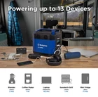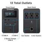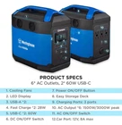 The item is brand new and sealed in the original box Perfect for camping, hiking, hunting, fishing, road trips, tailgating, music festivals, or outdoor parties Use as an emergency backup at home or anywhere without access to utility power 1008 Watt hours with 1500 continuous watts and 3000 peak watts Charges up to 8 devices at a time that can power up to 142 hours of lights, 18 hours of TV, 109 smartphone charges, 40 laptop charges, 151 drone charges, and 59-79 hours on select CPAP devices 31lb. of sturdy, compact construction allows for easy transport and storage No fuel, no fumes, and no noise for indoor and campsite friendly use LED display provides all controls and power station information in one place Six USB ports including USB-C and Quick Charge 3.0 port, one 12V car cigarette outlet, DC outputs, 12V DC input, and 6 120V household outlets 4 ways to charge with included car charger, wall charger, optional solar panel charger for sustainable use, or a portable generator Lithium-ion batteries provide long-lasting maintenance-free power Built-in safety features protect the battery and connected devices