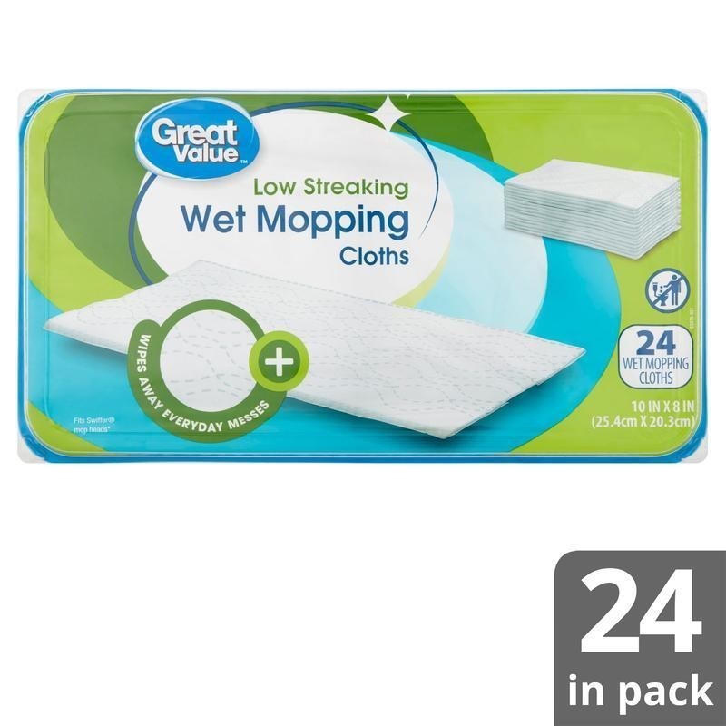 Cozy Electric Heating Blanket Faux Fur Soft Warm Throw Home Office Use 44.98 USD Free shipping Heavy Duty 40 Gallon Wheeled Industrial Tote W/ Drip Resistant Lid Storage New 26.84 USD 28.86 USD Free shipping 7% off 10 Piece Glass Mixing Bowls Set W/ Lids Food Storage Prep Serving Dish New 19.4 USD 20.86 USD Free shipping 7% off Soft Heated Blanket Twin Sherpa Electric Auto Off 5 Heat Settings Comfortable US 44.07 USD 47.39 USD Free shipping 7% off Bagless Upright Vacuum 720W Lightweight Multi Surface Cleaner 25ft Cord New 55.15 USD 59.3 USD Free shipping 7% off Electric Heated Blanket Soft Warm Auto-Off 5 Heat Settings Safe Eco-Friendly New 44.99 USD Free shipping Wet Dog Food Chopped Ground Dinner Beef Canned Adult Nutrition 4 Pack 22oz Cans 15.34 USD 16.49 USD Free shipping 7% off Professional Handheld Seed Spreader Bag Seeder 25lbs Capacity W/ Waterproof Bag 59.65 USD 64.14 USD Free shipping 7% off 300ct Baby Wipes Light Fresh Chamomile Hypoallergenic Soft Thick Resealable New 11.09 USD 11.92 USD Free shipping 7% off Premium BBQ Apple Wood Chunks Smoking Grilling 500 Cu In Natural Flavor New 14.51 USD 15.6 USD Free shipping 7% off Prismatic Iridescent Christmas Snowflake LED Decoration Kids Room Indoor New 31.51 USD 33.88 USD Free shipping 7% off Crossbow Soft Case W/ Self Healing Zippers & Adjustable Sling Camo Design New 30.89 USD 33.22 USD Free shipping 7% off Keep your cleaning supplies well stocked with Great Value Wet Mopping Cloths. These pre-saturated cleaning cloths are designed to fit Swiffer mop heads and similar models, with the same quality and performance, but at a fraction of the cost. Great Value Mopping Cloths clean surfaces by lifting away dirt, dust, grease, grime and more with just a quick swipe. Each pack contains a 24 count of cleaning cloths. They are easy to attach and remove, and made with a low streak formula that will leave behind a sparkling surface that you can show off. Keep your house sparkling clean with Great Value Wet Mopping Cloths. Great Value products provide families with affordable, high quality grocery and household consumable options. With our wide range of product categories spanning grocery and household consumables, we offer you a variety of products for your family's needs. Great Value Wet Mopping Cloths, 24 Count: Fits Swiffer mop heads Low-streak formula Wipes away dirt, grease and grime Includes 24 wet mopping cloth refills View Cleaning Product Ingredient Disclosure You may also like 47-In Extra Wide Walk Thru Baby Safety Gate Child Pet Dog Gate Kids White New 56.4 USD 60.64 USD Free shipping 7% off Heavy Duty Spincast Reel Smooth Action Built-in Bite Alert Anti-Corrosive New 53.43 USD 57.45 USD Free shipping 7% off Heavy Duty Photo Storage Box Holds 1100Photos Keepsakes Craft Supplies Stackable 19.84 USD 21.33 USD Free shipping 7% off Adjustable Height Plastic Folding Table 40" Black Portable & Easy to Clean New 50.05 USD 53.82 USD Free shipping 7% off Heated Scarf Men & Women Warm Portable Neck & Shoulder Wrap W/ 3 Heating Levels 47.32 USD 50.88 USD Free shipping 7% off Durable Waterproof Courtyard Rug Easy-Care Indoor Outdoor Rectangle 0.25in Pile 50.12 USD 53.89 USD Free shipping 7% off 12 Pack Natural Spring Water Bottles Premium Taste Dining Recyclable Bottles New 25.47 USD 27.39 USD Free shipping 7% off 52 Ceiling Fan LED Light 5 Blade Indoor Outdoor Energy Saving AC Motor New room 165.63 USD 178.1 USD Free shipping 7% off Extra Large Travel Duffel W/ Wet Shoe Pocket Bi-Fold Bottom Kit Adjustable Strap 48.83 USD 52.51 USD Free shipping 7% off Wood Shoe Bench W/ Two-Tier Storage Padded Seat Entryway Organizer Furniture New 46.57 USD 50.07 USD Free shipping 7% off Multipurpose 5 Blade Herb Scissors Kitchen Cutting Tool 2PC Comes with Cover 7.73 USD 8.31 USD Free shipping 7% off 19 Inch Duffel Bag Travel Tote Heavy Duty Polyester Carry-On Large Pockets New 48.49 USD Free shipping