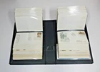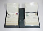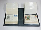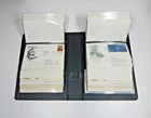 White Ace First Day Cover Album with hard plastic slip case. Album contains 53 first day covers ranging from 1959 to 1974 (the majority are 1973). Most are very clean without visible blemishes on the front and clear cancellation. Most are addressed and may have some wrinkling from age/storage and/or some light abrading on back as if once mounted with tape or with small pieces of tape still adhered. Last couple of envelopes not photographed because of photo upload limits. These items have been in non-sunlight, air conditioned, non-smoker environment.