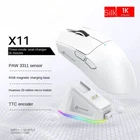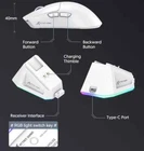 X11 PAW3311 Bluetooth Mouse, Triple Mode Connectivity, Touch Magnetic Charging Dock, Ultra-Light Gaming Mouse Product Parameters: Model: 11 Connection: Wired/2.4G/BT5.2 Size: 128x64x40MM DPI: 400- 22000dp i Weight: 63g±3g Return Rate:125-1000Hz Image Sensors: PixArt PAW3311 HUANO Switch: Pink Spots 80 million times Working Life: 65H Accelerated Speed: 50G Movement Speed :650IPS Colour: Black/White Supported operating systems: XP, Win7, Win8, Win10, Mac, Android, etc. Integrated full-function base: Magnetic fast charging, streaming light ring Magnetic charging base with exclusive RGB light ring, support multiple light effects switching with one key. Lighting effect switching by touch ,Multiple light effects switching in seconds Macro Drivers: One app for total control. dpi adjustments, payback rates,custom macros,A range of configurations such as keystrokes and programming can be set and saved in the driver. Packing list: 1× Mouse 1× 2.4G Receiver 1× Manual 1× Type-C Charging Cord 1× Charging base 1× Anti-skid stickers Note: If there is a mistake in the weight and battery capacity indicated in the box and manual, the description uploaded in this link shall prevail.