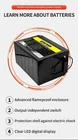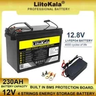 Product sellpoints Deep Cycle Lithium Battery 12v|200ah Battery Lifepo4|High Capacity Range:Available in 90Ah to 310Ah, this LiFePO4 battery offers a wide capacity range to suit various power needs. Long Cycle Life:With 4000+ cycles, this 12V battery ensures long-lasting performance and reliability. Built-in BMS Protection:Equipped with a robust BMS, the battery safeguards against overcharging and overdischarge. Versatile Application:Ideal for electric vehicles, solar power systems, and backup power, this battery is a versatile energy solution. Easy to Install:Designed for easy installation, this 12V battery comes with high current positive/negative connections. Warning/Disclaimer ⚠️Please mind potential fire risk and strictly follow the instruction manual for charging and storage. For disposal, please check your local authority's website for more information and dispose of the lithium-ion battery safely in accordance with the applicable legal requirements. Brand: Liitokala Battery capacity: 32Ah/60ah/100Ah/120Ah/180Ah/200Ah/280Ah/310Ah Battery size: 32Ah:195*133*171mm 60Ah:278*176*172mm 100Ah/120Ah/180Ah:330*175*216mm 200Ah/280Ah/310Ah:345*245*190mm Weight: 32Ah:3.35kg 60Ah:6.5kg 100Ah/120Ah:9kg 180Ah:12kg 200Ah:17kg 280Ah/310Ah:24kg Battery type: Built-in: 3.2V LiFePO4 Battery Nominal voltage: 12.8V Built in BMS: 32Ah uses 20A BMS 256w Power Built in BMS: 60Ah uses 60A BMS 640w Power Built in BMS: 100Ah/120Ah/180Ah/200Ah/280Ah/310Ah Maximum charging current: 50A Instantaneous discharge current: 200A Continuous discharge current: 100A Life: 4000 Cycles or more Charging temperature: 0~45°C Discharge temperature:-20~60°C Storage temperature:-20~65 °C Operating voltage range:8.0 V-14.6 V Overload protection voltage: 14.6 V 0.05 V Protection voltage against overlo:8.0 V 0.05 V Protect battery temperature:60°C plusmn 5°C Output and parameters: high current positive / negative connection column (red positive, black negative) Electric power application ●Start the battery motor ● Commercial buses and buses: Electric cars, electric buses, golf carts/electric bicycles, scooters, RVs, AGVs, Marines, coaches, caravans, wheelchairs, Electronic trucks, electronic sweepers, floor cleaners, electronic walkers, etc. ● Intelligent robot ● Power tools: electric drills, toys Energy storage ● Solar wind power system ● City grid (on/off) Backup system and UPS ● Telecom base, cable TV system, computer server center, medical equipment, military equipment other apps ● Safety and electronics, mobile point of sale, mining lighting / flashlight / LED lights / emergency lights Product advantages: Easy to carry, high capacity, high release platform, long working hours, long life, safety and environmental protection