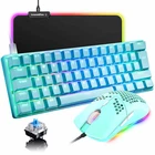 Description UK Layout 60% True Mechanical Gaming Keyboard and Lightweight Honeycomb Mouse Combo Type C Wired 61 Keys LED Backlit USB Waterproof Keyboard 14 Chroma RGB Backlight Full Anti-ghosting Keys for Computer/PC/Laptop/MAC 100% Brand New!! Quality Assurance!!! Color Available : Black / Blue Switch,White / Blue Switch Product Description: 【UK Layout Wired Mechanical Keyboard】 The keyboard is UK Layout. Professional Mechanical Keys, 61 keys compact gaming keyboard, giving you more space on your desk to move mouse or put other devices. Ergonomically designed, more comfortable during long typing sessions and gaming. 【3 in 1 Gaming Keyboard and Mouse Set】This gaming combo include compact mechanical keyboard, lightweight mouse, and mouse pad, The gaming keyboard adopt 61 key layout with Type C USB interface, make the most use of your extra space of desk, luminous keycap with side engrave craft, no need to worry about character fading, The lightweight mouse is designed with perforated honeycomb shell, reduce weight, easy to move smoothly, 【Multiple RGB Backlight】Both the wired gaming keyboard and mouse can offer different RGB backlight effect when using, the keyboard can offer 14 different chroma backlight effect, 8 different kinds of color, and the gaming mouse can offer 6 kinds of adjustable backlight effect, create a cool and interesting light world when using, can effectively enhance the competitive atmosphere when gaming, you can always adjust it to maximum your preference. 【Mechanical keyboard】This 61 key gaming keyboard is equipped with mechanical blue switch, support full key non-conflict function, offer high responsive feedback and tactile feel with clicky sound when typing, can be clicked up to 50 million times, more durable, Featured with mini portable size, removable keycap, and waterproof&dustproof, easy to carry and clean, adjustable foot support offer extra using angle, ensure long using without fatigue, more practical. 【Ultralight Honeycomb Gaming Mouse】This wired gaming mouse has an exquisite ergonomic perforated O-shaped appearance, 6 programmable button, 6 adjustable DPI(800/1600/2400/3200/4800/6400), and cool chroma backlight, use high-performance optical sensor, more accurate, can be customized by using the mouse driver to fit your different needs. Mouse driver software download link:https://drive.google.com/file/d/1izo5wQ55cHD8fYnp5MXNHd7rEy1WpvN3/view 【Plug&Play】This wired mechanical gaming keyboard and mouse combo can be easily used by plugging the USB cable into your computer USB port, can compatible with PC Mac Laptop Computer which support windows 7/8/10/XP/Vista or higher version, Long USB cable length, no cable pull when moving, quick and accurate response, fancy RGB backlight, lightweight, easy to use, perfect choice for typists and gaming user. Wired Mechanical Gaming Keyboard is comfortable for typing and gaming. 1、There are 14 LED backlit modes for the gaming keyboard you can press the FN+Pause up to switch. 2、The mechanical keyboard LED light is RGB and you can press FN+↑/↓ to adjust the 14 level brightness. 3、you can adjust the speed of LED breathe by pressing FN+←/→. Keyboard Specification: Number of Keys: 61 key Mechanical Switch: Blue Switch Connection Method: Wired by Plugging the attached USB cable Interface Type: Type-C USB Cable Length: 1.6m/62.9in Full Key Anti-ghosting Compatible System: Windows series system, Android, Linux, IOS, etc, system Backlight Adjustment: Press FN+Tab to switch backlight effect(up to 14 kinds); Press FN+@ to switch backlight color; Press FN+U/J TO increase/decrease(turn off) the backlight brightness; Press FN+ALT to adjust the changing speed of the backlight. 12 Multimedia Key Combination: FN+Q=Home Page; FN+W=My Computer; FN+E=Email Box; FN+R=Music; FN+T=Calculator; FN+[{= Volume+; FN+]}=Volume-; FN+A=Previous Song; FN+S=Next Song; FN+D=Play/Pause; FN+F=Stop; FN+Y=Search Mouse pad Features: Mouse Mat Dimensions:350*250*5mm Light Effects:10 colors (Red/Green/Blue/Pink/Yellow/White/Cyan-blue/Rainbow breath/Rainbow flash/Rainbow flow) USB Braided Charging Cable Sige:39.4inch Material: This gaming mouse pad features luminescent fiber and a soft cloth surface with a non-slip rubber base. It is waterproof and non-slip, ensuring precise mouse control and consistent desktop stability. Mouse Specification: Number of Buttons: 6 (Right Button, Left Button, Scroll Wheel, DPI Button, Backward Button, Forward Button)+1 Light Control Button in the bottom of the mouse Optical sensor: Sunplus SPCP199 USB cable length: about 1.7m/66.9in DPI adjustment: Up to 6400,Default Setting-1600(6 levels/ can be customized) Supported operating system: Windows 2000 / XP/VISTA / 7/8/10&MAC Package List: 1* Wired 61 Key Mechanical Keyboard 1* Wired Honeycomb Mouse 1* User Manual 1* USB Cable 1* Keypad removal tool 1* RGB Mouse Pad Our goal is customer satisfaction! Items are generally shipped out the next business day after your payment has been cleared (Sat.&Sun. Excluded.) The shipment usually takes 2-7 business days(Saturday and Sunday Excluded). If you need the item Urgently, please choose the Royal Mail Special Delivery Guaranteed by 1pm®. We are not responsible for undeliverable address. We reserve the right to charge the shipping fee again for returned items due to wrong address. Local pick up is available, please contact first for more details. We accept PayPal Only !! Payment must be made within 3 days of the order. If you can't checkout immediately after auction close, please wait for a few minutes and retry Payments must be completed within 3 days. 12 months Warranty. Buy with confidence! If you are not satisfied when you receive your item, please return it within 14 days for a replacement or money back. Please contact us before you return it. If item defective in 3 month, we will send you a replacement without extra charger, or offer refund after we receive the defective item. If item defective after 3