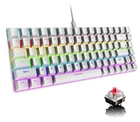 Wired USB compact gaming keyboard, 84 keys, type-c USB interface, 22 different rainbow backlight effects, Blue switch & Red switch, Ergonomic Design&Wide Compatibility ??【84 Keys Gaming Keyboard】 This wired gaming kit gathers a compact gaming keyboard, easy to match with your office or game room setup. Featured with 84 key layouts and type-c USB interface, mini size and portable, plug and play, you can use the keyboard anytime and anywhere. ??【Multiple Cool Backlight】 This mechanical gaming keyboard can offer up to 20 different rainbow backlights by pressing the FN+| key, and you can also adjust backlight brightness and change speed to meet your preference, more choices to let you enjoy a stunning lighting show when using it for gaming, especially in a dark place. And it is capable of full key anti-ghosting and multi-media shortcut function, allowing multiple keys simultaneously with quick response and accuracy. ??【Professional Mechanical Switch】 This 84-key gaming keyboard is equipped with a classic clicky Blue switch, which is known for audible clicking sound and tactile feedback when typing, offers a distinct feeling when used, can click up to 50 million times, is more durable with high responsiveness, can meet your needs of crisp click sound and clear feedback when gaming or daily using, ensure accuracy and quick response when typing in high speed, very practical. ??【Ergonomic Design&Wide Compatibility】 This 80% mechanical gaming keyboard and mouse can be compatible with a PC Laptop Computer that support Windows 2000/XP/Vista/Windows 7/8/10/MAC OS. Ergonomic high-low structure, 84 key layouts, luminous keycaps, an independent mechanical switch, FN key combination shortcut function, waterproof, dustproof, easy to use, and clean when gaming or typing.