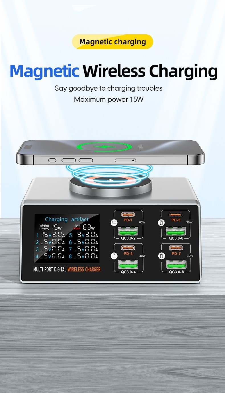 Wireless Charg PD Multifunctional 9 Port Smart Fast USB Charger for Phone Tablet
