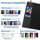 【15W Wireless Charging Mouse Pad】Gaming Mouse Pad combines mouse pad and wireless charging station into one, allowing you to easily charge any wireless charging device, at your fingertips, while you’re working. This mouse pad is compatible with iPhone 16/16 Plus/16 Pro/16 Pro Max/15/15 Plus/15 Pro/15 Pro Max/14/14Plus/14Pro/14 Pro Max/13/13Pro/12/12Pro/11Pro/Xs Max, Samsung Galaxy S22/S22 Ultra/S21/S20/S10, Galaxy note 10/9/8 and all wireless charging supported devices. (Note: 15W requires a power adapter 9V 2a or QC3.0/2.0. Power adapter is NOT INCLUDED.) 【Tidy Your Desk】 Having a wireless fast charging pad built into the mouse mat means you can get rid of your unwanted wires and chargers. Give your desk a makeover, and keep it clutter free with our mouse pad.3 charging modes indicator - BLUE for standby mode, GREEN for charging, BLUE Flashing for placed error. 【Extra Large Mouse Pad】The large extended mouse pad measure: 800 x 400 mm/ 31.5 x 15.7 inches, which is wider and longer than others. This desk pad can perfectly fit your keyboard and mouse of any size. 5mm thickness is thick enough to support a wrist, which ensures your wrist's comfort. 【Soft & Smooth Surface】The large mouse pad offers ultra smooth, accurate and controllable surface. Provides the optimal surface for gaming sensors and less resistance than other mouse pads. Offers a fast and smooth tracking surface for your mouse. Raised your gaming experience to the higher level. It is easy to wipe clean with a piece of wet cloth, and job done. 【Non-Slip Rubber Base】 The bottom of this wireless charging desk pad is designed with non-slip natural rubber to enhance stability and to ensure your stable operation of the mouse and keyboard. Just immerse into your work or games without worrying about the annoying mouse pad movement.Stitching along the edges of the surface ensure it will never fray or peel. 【Waterproof and Easy to Clean】 A spill-proof coating of this desk mat makes liquids slide right off the surface. Effectively prevent damage from spilled drinks or other accidents. Will not delay your work or gameplay. It is easy to wipe clean with a piece of wet cloth, and job done. 【What is Included in the Package】: 1x Wireless Charging Mouse Pad, 1x USB-C Cable, 1x User Manual. Please feel free to with us if you encounter any problem. Our friendly will reply you within 24 hours.