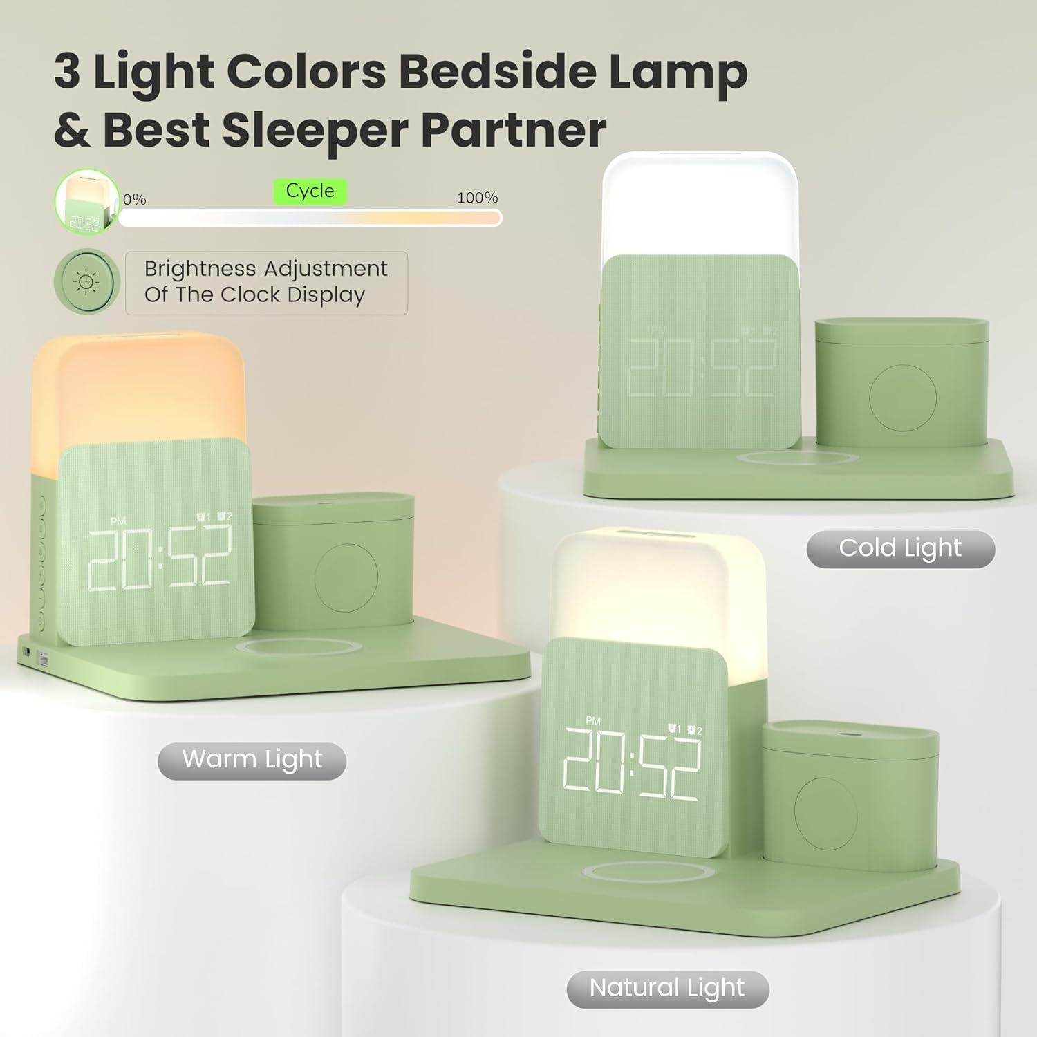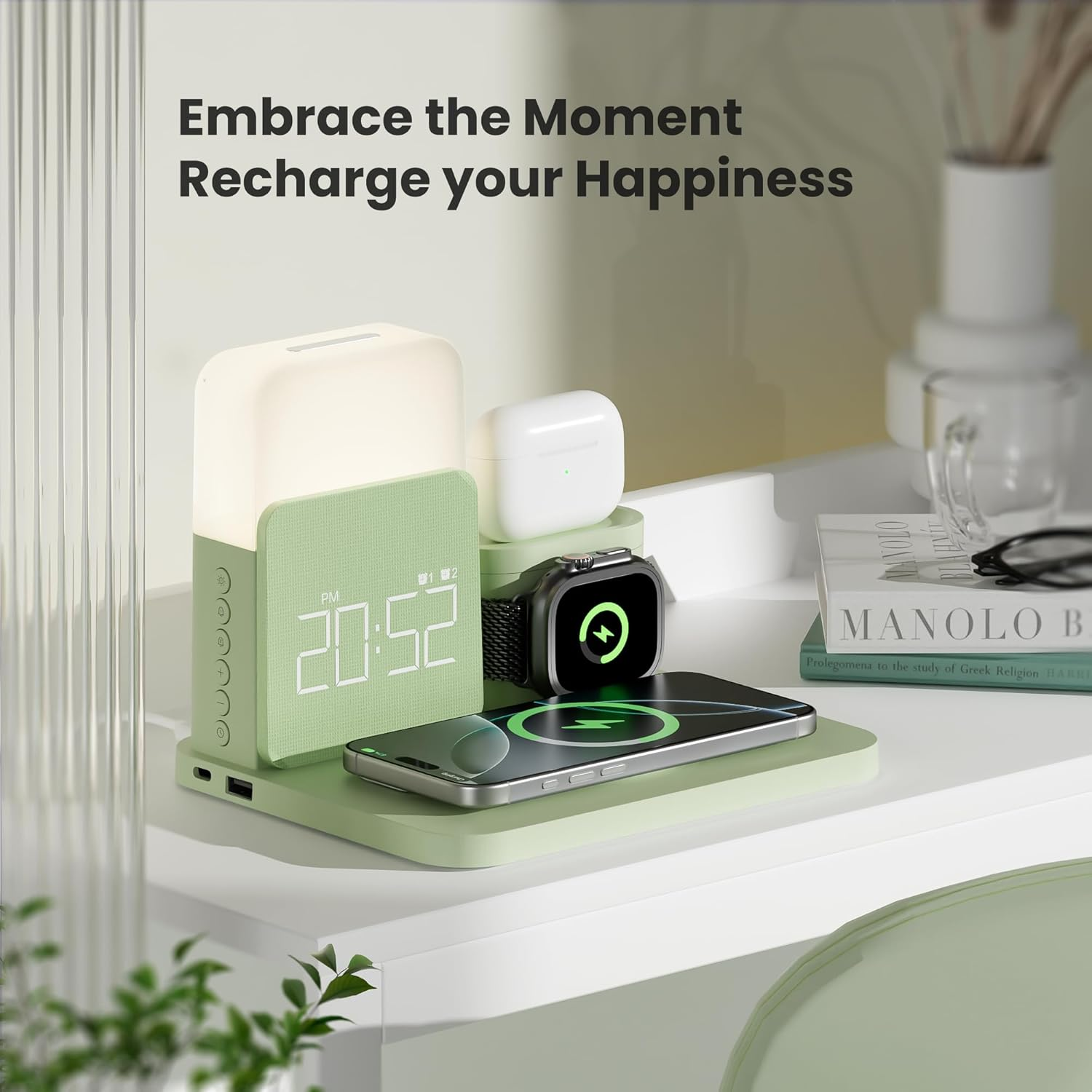 Store New Arrivals Add to Favorite View Feedback Contact Fast deliveries to the customer's home Quality customer service John Make the customers happy! Wireless Charging Station, 7 in 1 Wireless Charger Stand with Dual Alarm Clock, Charging Dock for Iphone 17/16/15/14/13/12/11/Pro/Max/Samsung Phone, Apple Watch 10/9/8/7/6/5/SE, Airpods 4/3/2 Description **Versatile 3-in-1 Charging Station with Alarm Clock & Night Light**Experience the ultimate convenience of a large digital alarm clock, a 3-color adjustable night light, and a powerful charger for both Apple and Android devices. Say goodbye to clutter and messy wires on your nightstand. This charging station is not just highly functional but also charmingly adorable. And now, with the added dual alarm clock function, two people can wake up at different times, ensuring everyone starts their day on schedule. **Dual Alarm Clock Features**Easily adjust the LED display's brightness from 0 to 100%. View the time clearly from anywhere in the room. Choose from three adjustable volume levels and time modes (12 or 24-hour, AM/PM). Enjoy the snooze function for an extra 5/10 minutes of precious sleep. Set two distinct alarms to meet the diverse wake-up needs of different individuals. **Night Light Features**The night light offers three beautiful colors (white, warm white, warm) for seamless switching. You can turn it off or adjust the brightness from 0 to 100%. Ideal for reading, breastfeeding, sleeping peacefully, or working. **Wide Compatibility**Supports wireless charging for all Apple and Android phones. Compatible with a wide range of models including iPhone 16 series, 15 series, 14 series, and more. Also works with Samsung Galaxy S22 Ultra and other models. As well as AirPods 1/2/3/4/Pro 1/2 and Apple Watch 10/9/8/7 and so on. **Safe Charging**Equipped with an 18W charger adapter, allowing simultaneous charging of three devices. Built with over-current, over-voltage, over-temperature, short circuit protection, and foreign substance detection. The heat dissipation holes on the back ensure safe charging and protect your devices from overcharge damage. Product description Removable Charging Box The newly upgraded charging box does not require an additional charging cable and can be directly connected to a power source for charging. It is convenient to carry it alone, and you can charge freely! Raised Design & Precise Charging Don't worry about your phone's camera hitting the charging plate, causing it to not charge properly. The raised design perfectly avoids the camera height, allowing for precise charging! Item model number RLC-381BUS Package Dimensions 7.72 x 6.34 x 5.94 inches Total USB Ports 3 Color Green Wattage 18 watts Connector Type USB Type C Compatible Devices Headphones, Smartwatches, iPhone Item Weight 1.54 pounds Input Voltage 120 Volts Size 25W Special Feature Wireless Charging Compatible Phone Models function(f) {var _np=(window.P._namespace("DetailPageProductOverviewTemplatesJava"));if(_np.guardFatal){_np.guardFatal(f)(_np);}else{f(_np);}}(function(P) { P.when('A').execute(function(A){ A.on('a:truncate:po-attribute-truncate-3:updated', function(data) { var isTruncated = !data.truncateInstance.getIfTextFits(); var seeMoreElement = document.getElementById('po-attribute-see-more-id-3'); if(seeMoreElement) { seeMoreElement.style.display = isTruncated ? '' : 'none'; } }) }); })); Compatible with iPhone 17/16/15/15 Pro/15 Pro Max/15 Plus/14/14 Pro/14 Pro Max/14 Plus/13/13 Pro/13 Pro Max/13 Mini/12/12 Pro/12 Pro Max/12 Mini / 11/11 Pro/11 Pro Max/X/XR/XS/XS Max/8/8Plus; Samsung Galaxy S24/S23/S22 Ultra/S22+/S22/S21 Ultra/S21+/S21/ S21 FE/S20/Note 10; AirPods 1/2 /3/4/Pro; Apple Watch 10/9/8/7/6/5/4/3/2/SE/Ultra(Please note: only supports Apple Watch) See more Included Components Charger, 2 x USB Cable ABOUT US We offer the best prices around on high quality products. Our E-store includes media such as books, movies, music and games while offering electronics, toys, sporting apparel, clothing, tools, general home, garden items and more. SHIPPING We are always working hard to ensure your package arrives as soon as possible. Please understand that some factors like weather, high postal traffic, and the performance of shipping companies are outside of our control. We offer free shipping to the lower 48 states and ship within 2 business days of payment, usually sooner. We do not accept P.O. Boxes. Please provide a physical address. For shipping outside of the continental USA, we only use eBay's Global Shipping Program. The item is shipped to KY and then sent to the rest of the world. International customers are responsible for all duties and taxes. Continue to 'check out' to calculate costs for shipping the item to your country. Messages regarding eBay's Global Shipping Program MUST be directed at eBay EXCLUSIVELY. RETURNS We offer a 30-Day Return Policy on items in which you are not completely satisfied with. You have the option of a full-refund or an exchange of the item. No returns are available on items shipped outside of the USA PAYMENT We accept PayPal. CONTACT US This page content is yet to come Please ad us to your favorite seller and visit again later Thank You CUSTOMER SATISFACTION We try our very best to make sure every customer is completely satisfied. If there's a problem, message us! We're happy to help. WE ACCEPT