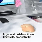 This ergonomic wireless mouse is a game-changer for long work sessions! The comfortable curved design fits perfectly in my hand, reducing wrist strain, and the quiet clicks are a bonus in shared spaces. I love how easily it connects to multiple devices—switching between my laptop and tablet is seamless. The side buttons make navigation super convenient, and the cream color adds a stylish touch to my workspace. Highly recommend for anyone looking for comfort and functionality!
