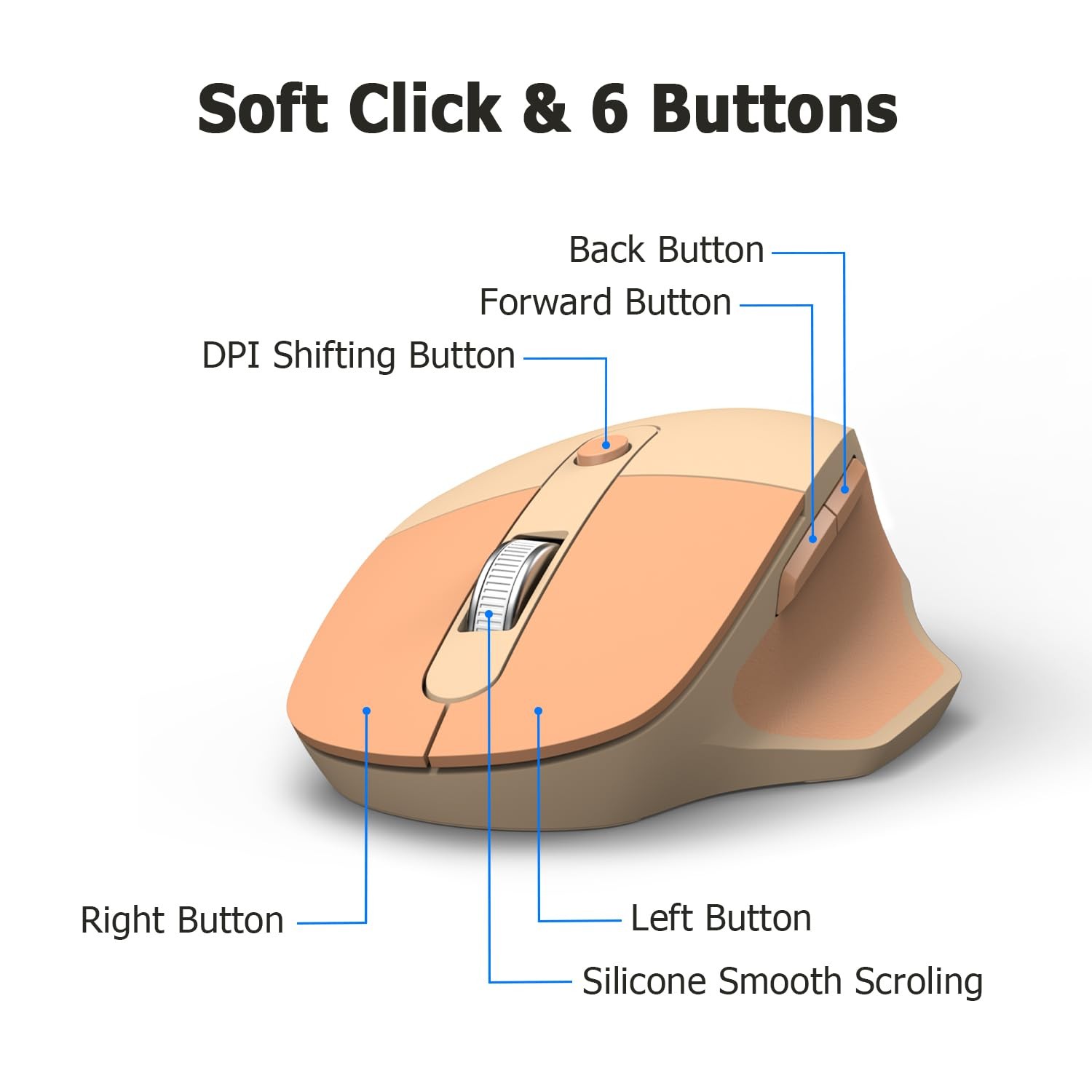 Wireless Ergonomic Mouse, Bluetooth Mouse Wireless, Quiet clicks, 4 buttons, Ergo Mouse with Multi-Device for Windows/macOS/iPadOS, Laptop, PC - Cream Colorful [Ergonomic Wireless Mouse] The ergonomic wireless mouse has a stylish, curved design that matches your hand's natural shape, helping to reduce wrist strain and discomfort during long use. It includes side buttons for easy navigation, making your work more convenient and comfortable. [Multi-device and Multi-OS] This mouse is able to connect to 3 devices (2.4G Wireless+ Bluetooth*2) . You can control three devices at the same time, switch freely between Android, tablet and Mac with just one button. Compatible with Windows, Android, Mac OS PC Laptop Desktop etc. [High Precision & Adjustable DPI] This wireless Bluetooth mouse has adjustable DPI settings (1000/1600/2400) to fit your needs. It’s great for daily work and works on any desktop or mouse pad. The "Page Back" and "Page Forward" buttons make browsing easier, and don’t forget to remove the blue plastic film from the slip mat before using it. [Features Auto-Sleep Function]This ergonomic wireless mouse, powered by 1 AA battery, features a smooth frosted surface and quiet clicks, entering auto-sleep mode after 5 minutes of inactivity to save battery life, allowing for up to 18 months of use; just click to wake it up. [Conforatble Size]This ergonomic mouse is recommended for medium to Large hands.To get a more comfortable fit and better user experience, we recommend measuring the size of your hand prior to purchasing.