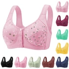 Women Full Cup Print Thin Underwear Plus Size Front Button Wireless Sports Lace Bra Breast Cover Large Size Bras Features: Bras for Older Women:Our front closure bra will give you great support and comfort. The newest design features 3D seamed cups, wide side wings, cushioned shoulder straps, and a U-shaped back panel to combat sagging, smooth back bulges, and correct armpit concerns. Comfort and Breathable: Made from a blend of microfiber and elastane, our sweat-wicking fabric provide flexibility, durability, and comfort. Keep you comfortable wearing it all day long. How to Choose the Right Size:Refer to the international size to find your cup type and size, compare your body size parameters, and choose the most suitable size. Note: We recommend choosing a larger size than you normally wear. Push Up Bras for Women:The front buckle makes wearing and removing this bra a breeze.Wire free thin cups provide the perfect blend of support and comfort, promoting a natural bust shape without poking underwires. Bras for Older Women: As you age, the shape and weight of your breasts may change. Bras use special construction and materials to provide extra support and lift to meet the needs of older women. Product Description: Season:Four season Gender:Women Occasion:Sleepwear,Daily,Outdoo,Sports :Polyester Pattern Type:NO Style:Sexy Fit:Fits ture to size How to wash:Hand wash What you get: 1 PC Bra Size Cup Height Under Bust Cup L 33cm/12.99'' 76cm/29.92'' 40D/40E XL 34cm/13.39'' 80cm/31.50'' 42D/42E XXL 35cm/13.78'' 84cm/33.07'' 44D/44E XXXL 36cm/14.17'' 88cm/34.65'' 46D/46E XXXXL 37cm/14.57'' 92cm/36.22'' 48D/48E XXXXXL 38cm/14.96'' 96cm/37.80'' 50D/50E Size:L Cup Height:33cm/12.99'' Under Bust:76cm/29.92'' Cup:40D/40E Size:XL Cup Height:34cm/13.39'' Under Bust:80cm/31.50'' Cup:42D/42E Size:XXL Cup Height:35cm/13.78'' Under Bust:84cm/33.07'' Cup:44D/44E Size:XXXL Cup Height:36cm/14.17'' Under Bust:88cm/34.65'' Cup:46D/46E Size:XXXXL Cup Height:37cm/14.57'' Under Bust:92cm/36.22'' Cup:48D/48E Size:XXXXXL Cup Height:38cm/14.96'' Under Bust:96cm/37.80'' Cup:50D/50E