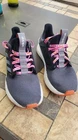 Elevate your tennis game with these stylish and comfortable Adidas Performance sneakers. Designed specifically for women, these sneakers are perfect for athletic activities like tennis. The shoes are made with breathable mesh material and feature cushioning for added comfort. These gray and black sneakers are perfect for any tennis outfit and are available in size 8. The shoes are standard width and are not customized. With the Adidas brand, you can be sure of the quality of these sneakers. Step up your game with these comfortable and durable sneakers.