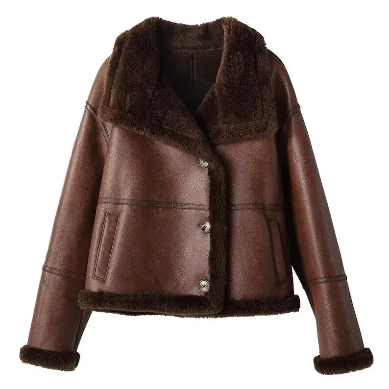 Experience timeless style with our Women's Brown Shearling Jacket, a versatile piece that transitions effortlessly from casual to sophisticated settings. Crafted with genuine leather, this mid-length bomber jacket boasts a chic spread collar and a snug button closure, ensuring both warmth and comfort. The rich brown hue complements a variety of outfits, making it an essential addition to your wardrobe. The jacket features a cozy faux fur lining and insulation, keeping you comfortable in cooler temperatures. Designed for all-season wear, it's suitable for fall, spring, and winter. With sizes ranging from XXS to 3XL, this jacket offers a regular fit for a classic, flattering silhouette. Practical and fashionable, it's an investment piece that promises to elevate any ensemble.