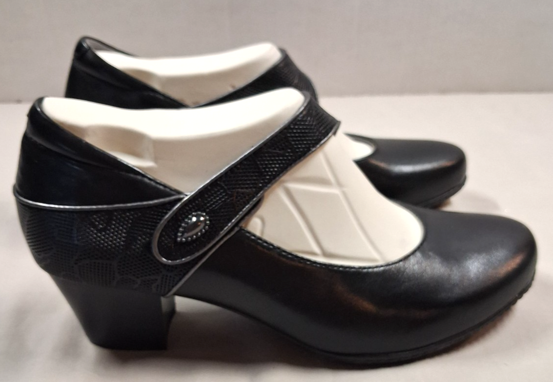 The product is a pair of women's Earth Calgary Montreal Mary Jane shoes in black multi leather, size 8. These comfortable shoes are perfect for casual occasions in the spring, summer, or fall. The solid black color, Mary Jane style, and leather upper material make them a versatile and stylish choice for everyday wear. Made by the brand Earth, these shoes offer both comfort and quality for women looking for practical and fashionable footwear options.