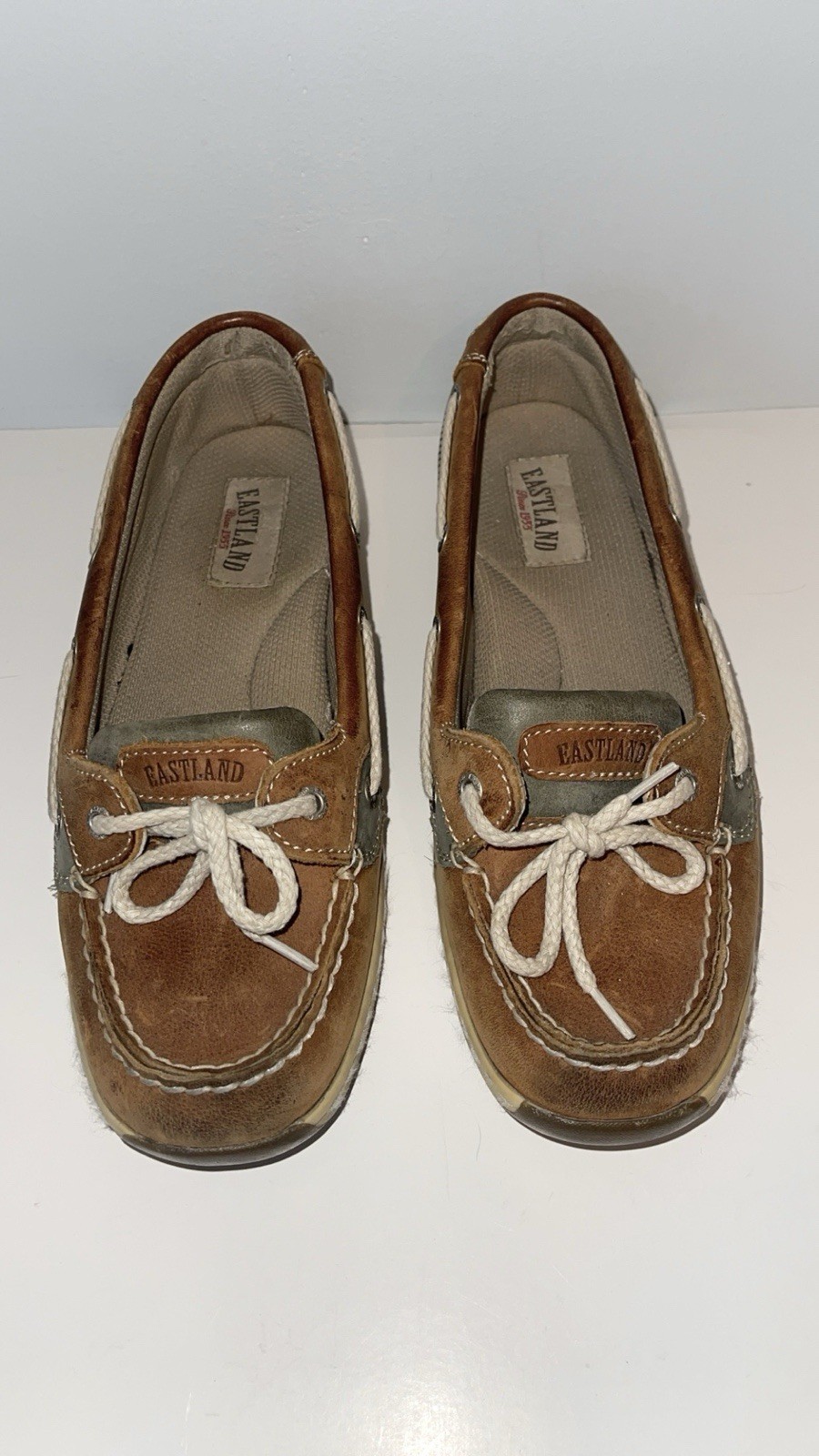 Women’s Eastland Loafers in a size 8M Women’s Sunrise Style Slip-on causal shoes Brown leather upper material A preowned pair that is in good condition, shows normal wear, functional with lots of life left Come packaged well in a box, free of smoke smell and pet hair 10% benefits The American Breast Cancer Foundation through eBay charities